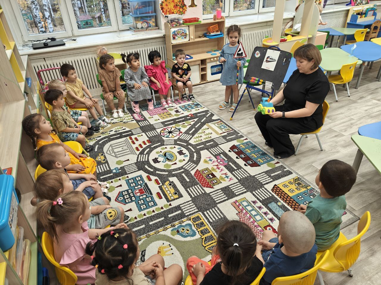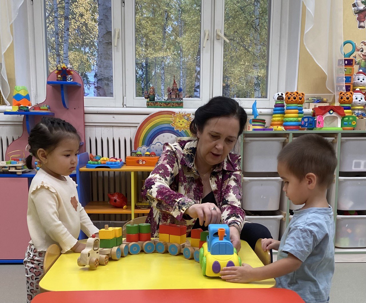 Воспитатель рассказывает детям о железнодорожном транспорте